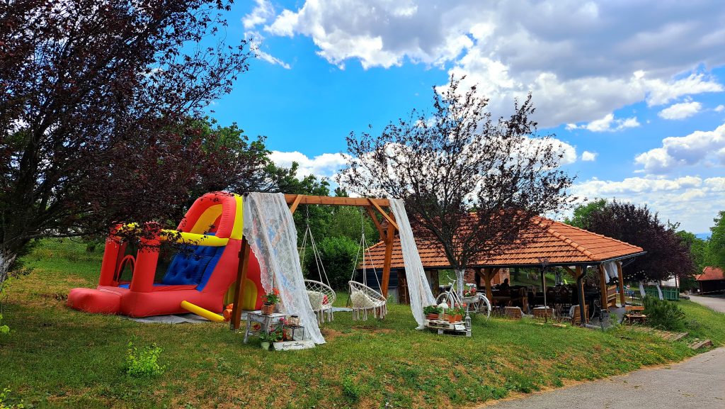 Zaštićeni ste od vremenskih nepogoda zahvaljujući kvalitetnoj ceradi, a voćnjak pruža prirodan hlad i čaroliju u svakom kutku.